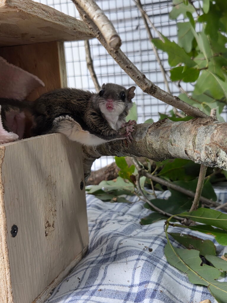 This flying squirrel came to us as a young one, but is now growing into a strong adult awaiting release. Due to the time of year it came in, it will need to be overwintered with us until it is warm enough for it to be in the wild on its own. Your donations help us keep our operations going all year round!